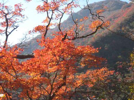 3時間だから風穴みちと大差はないといわれたので、白水鉱泉に下り始めた。紅葉があまりにき
