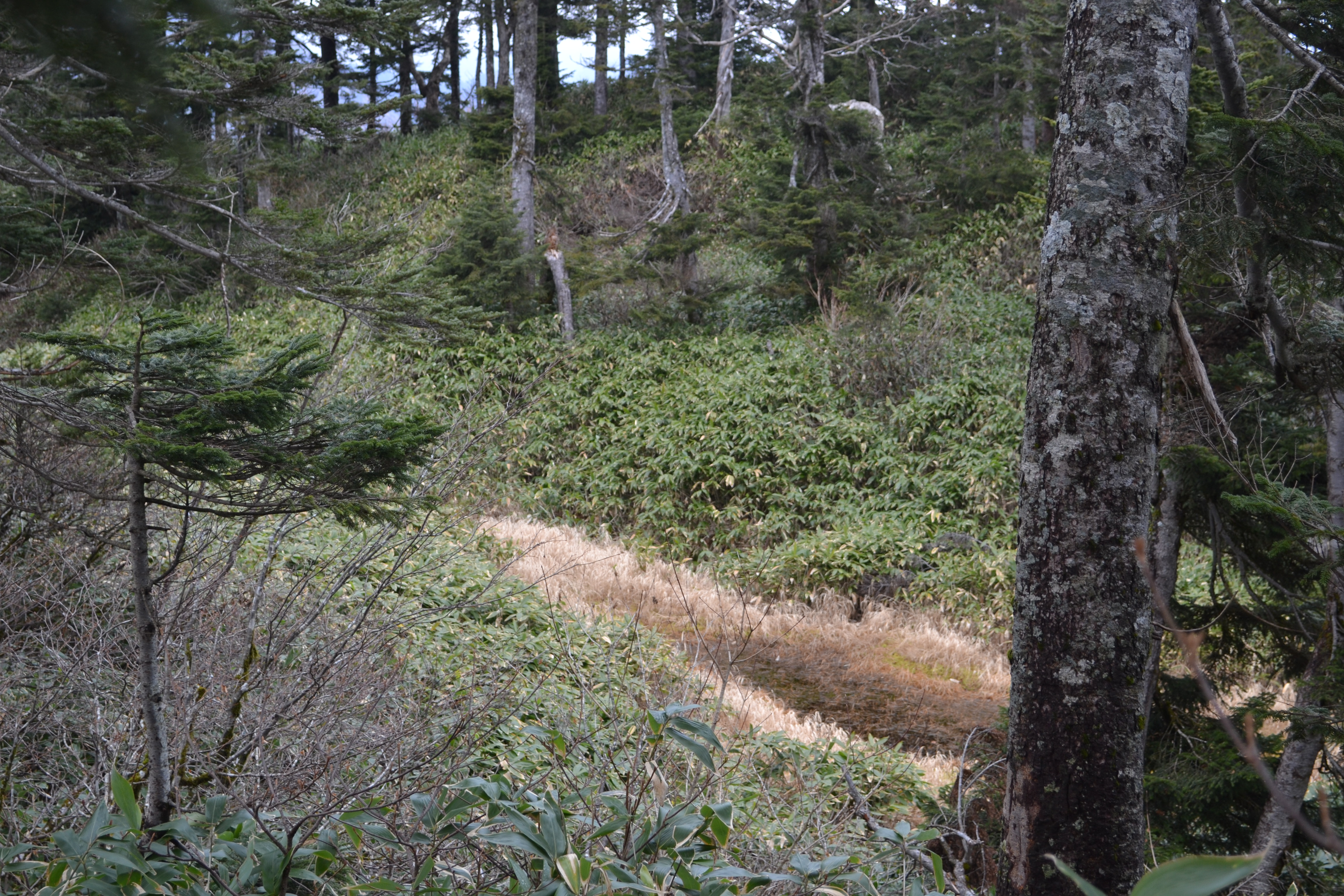 バス道から安房山へは登山道がある。無人通信施設へはこの道を往復するよう だ。縄ばしごがあった。