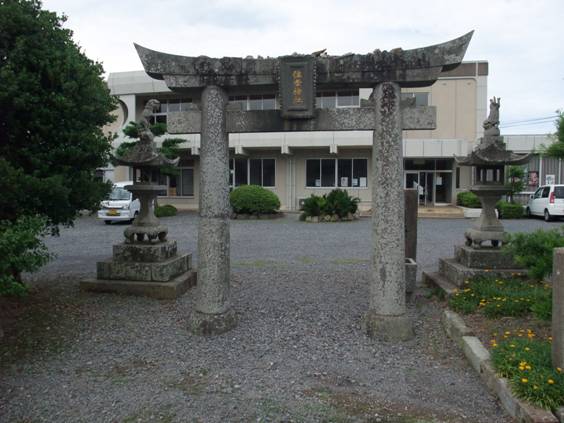 7.納所農漁民センターにあった住吉神社系列の鳥居 狛犬が逆立ちしているものと普通のものがあった。